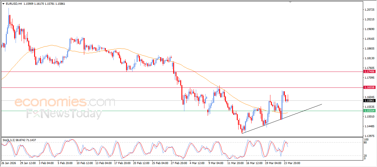 The EURUSD pair is experiencing sideways and volatile intraday trading, attempting to build positive momentum that could support a recovery and a renewed upward move. At the same time, the pair is trying to ease its overbought condition on the relative strength indicators, especially as negative signals begin to appear.