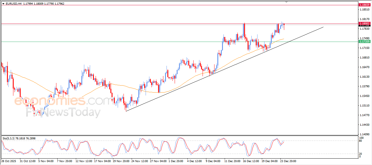 The price of (EURUSD) witnessed fluctuated trading in its last intraday trading, attempting to gain bullish momentum that might help it to breach the key resistance at 1.1800, supported by the emergence of the positive signals on the relative strength indicators, and there is dynamic support that is represented by its trading above EMA50, under the dominance of the main bullish trend on the short-term basis, with its trading alongside supportive trend line for this track.