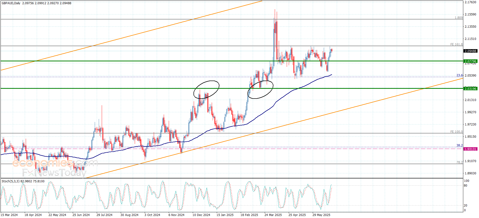 Despite the stability of the GBPAUD price within the main bullish channel’s levels, its repeated fluctuations below the extra resistance at 2.1040 decelerates its bullish attempts, which forces it to provide new sideways fluctuation by its stability near 2.0960, while the unionism of providing positive momentum by the main indicators makes us monitor the price behavior until achieving the required breach, to ease the mission of targeting the positive stations near 2.1090 and 2.1140.