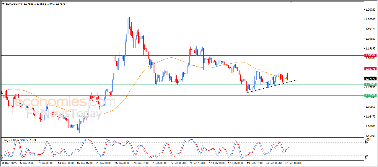 The price of EURUSD declined in fluctuating trading on its last intraday levels, attempting to get rid of the negative pressure of EMA50, which led it to erase its early gains amid its trading alongside minor bullish trend line on short-term basis, with the emergence of positive signals from relative strength indicators, reinforcing the chances of the price rise in the upcoming period.