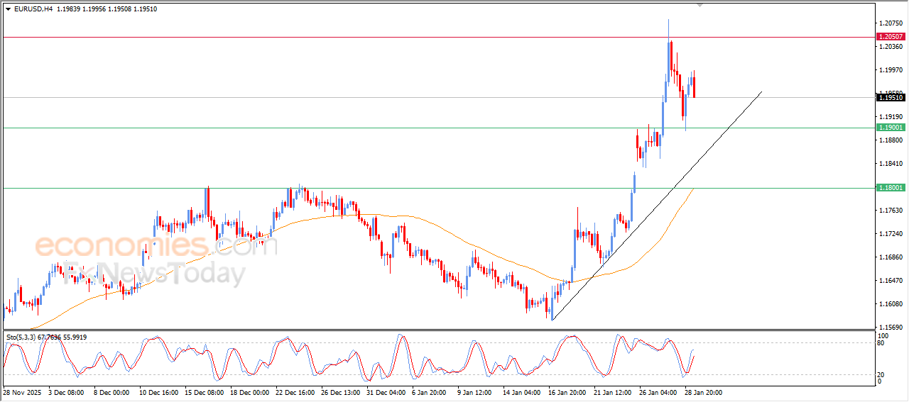 The main indicators attempt to provide bullish momentum will increase the chances of forming new bullish waves, to keep waiting for targeting 200.55 level, then recording the next main target at 202.20, which represents 216.8%Fibonacci extension level that appears in the above image.