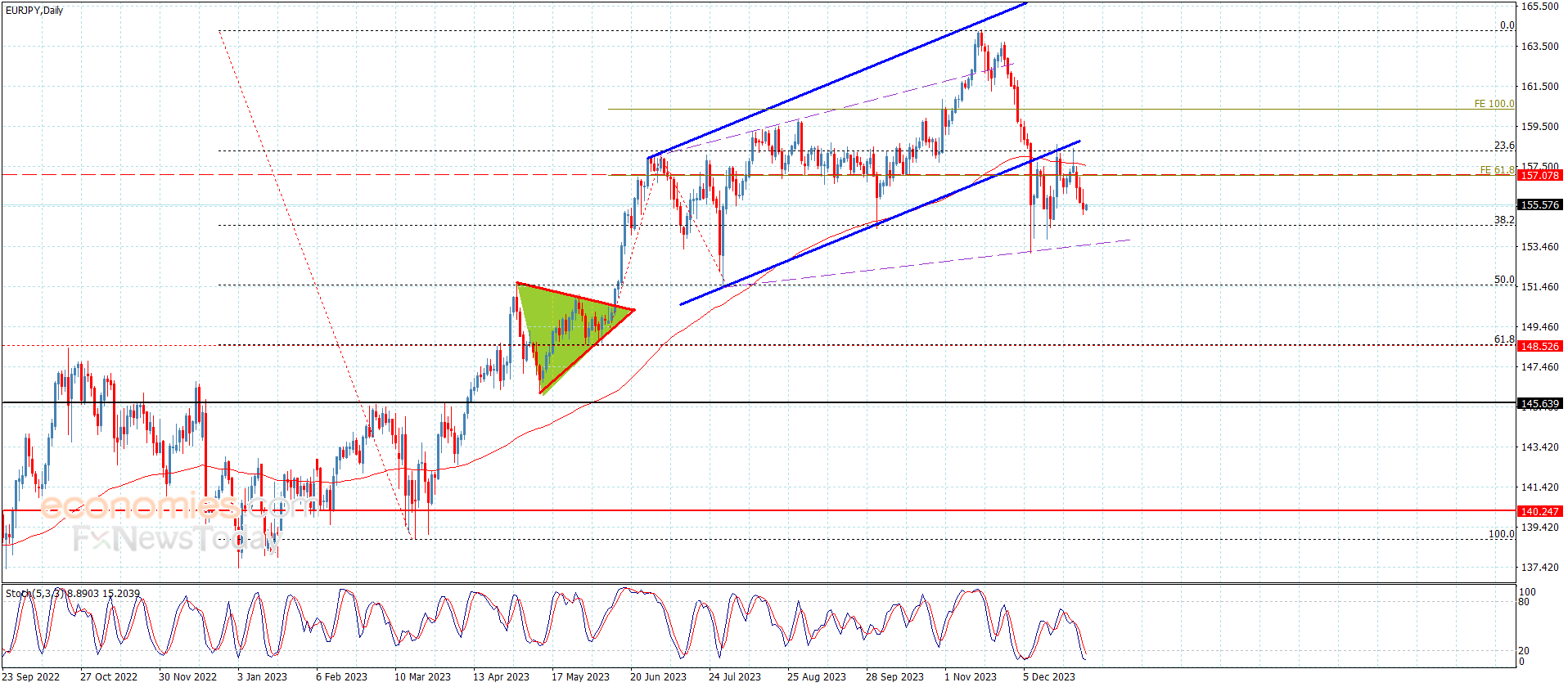 The EURJPY pair still under the negative effect by providing frequent negative closings below 157.10 barrier, supported by the fluctuation of the moving average near it, to notice forming some negative waves recently to achieve the first target at 155.00.