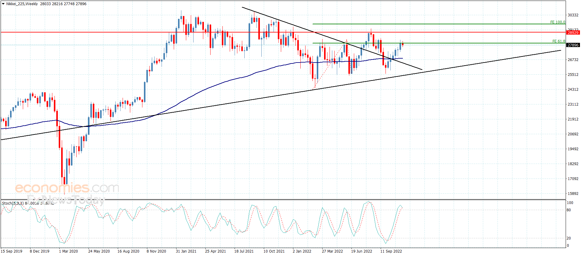 Nikkei index attacked the additional barrier 28100 recently, to hinder the bullish rally and form sideways fluctuation near 27800 as appears on the chart, while the frequent fluctuation above the additional support near 27280 and stochastic positive momentum signals allow us to wait to breach the mentioned barrier to confirm the preparation to record additional targets that might start at 28480 and 28920.