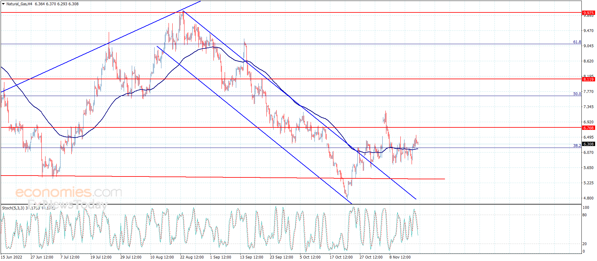 Natural gas price succeeded to rally above the moving average 55 at 6.200, to confirm its affection by the domination of the bullish bias and achieve 6.550 followed by bouncing negatively due to the lack of the positive momentum.