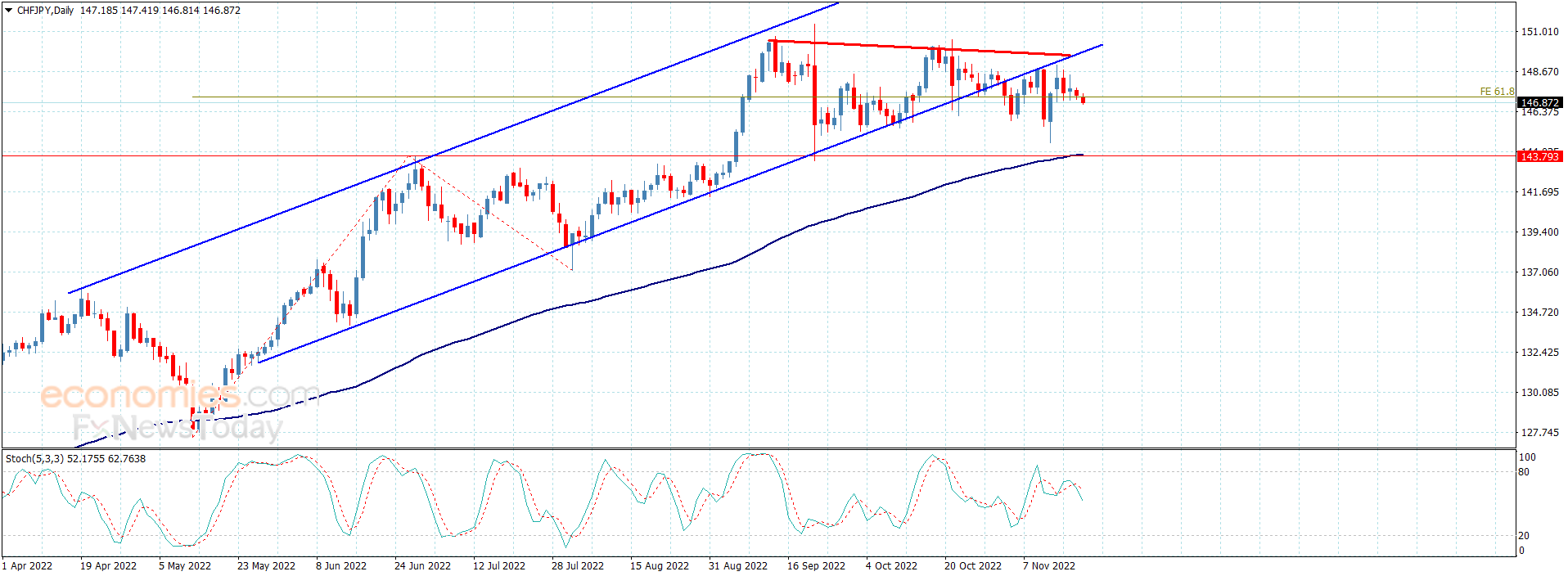 The CHFJPY pair moved away from 149.60 resistance to confirm surrendering to the expected bearish bias, to settle near 147.00, while forming additional barrier at 147.30 and stochastic attempt to provide the negative momentum allow us to keep the negative overview, reminding you that the additional targets are located near 146.10 followed by 145.30.