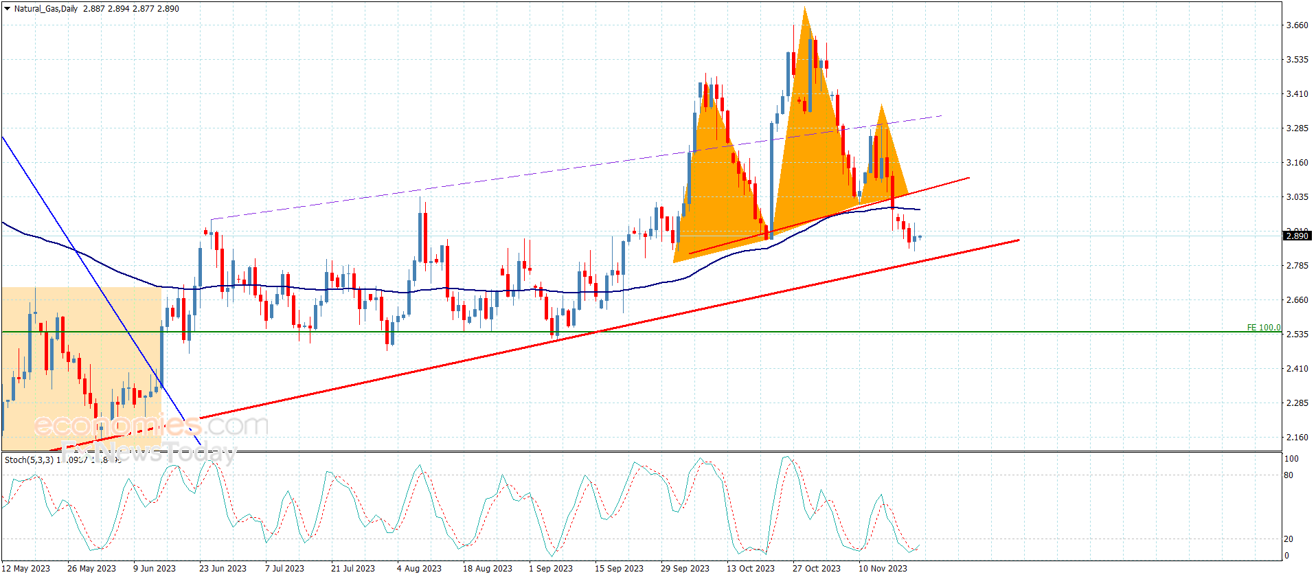 No change to natural gas price by fluctuating below the MA55, attempting to gather the required additional negative momentum to attack 2.800 support line.