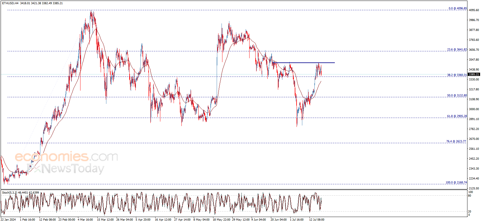 Ethereum price (ETHUSD) trades negatively now to test the key support 3360.31$, which urges caution from the upcoming trading, as the price needs to hold above this level to keep the bullish trend active for the upcoming period, which its targets begin by breaching 3505.00$ to confirm rallying towards 3641.82$ followed by 3890.00$ as next positive stations.
