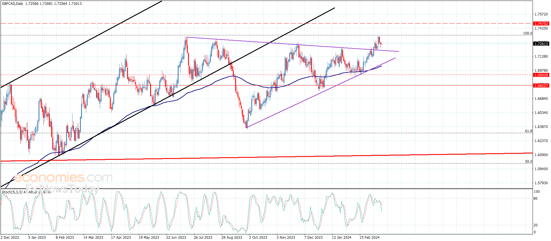The GBPCAD pair surrendered to the stability of 1.7350 barrier recently, to form correctional bearish rebound and approach the major support 1.7190 and hold above it, to hint keeping the previously suggested positive attempts.