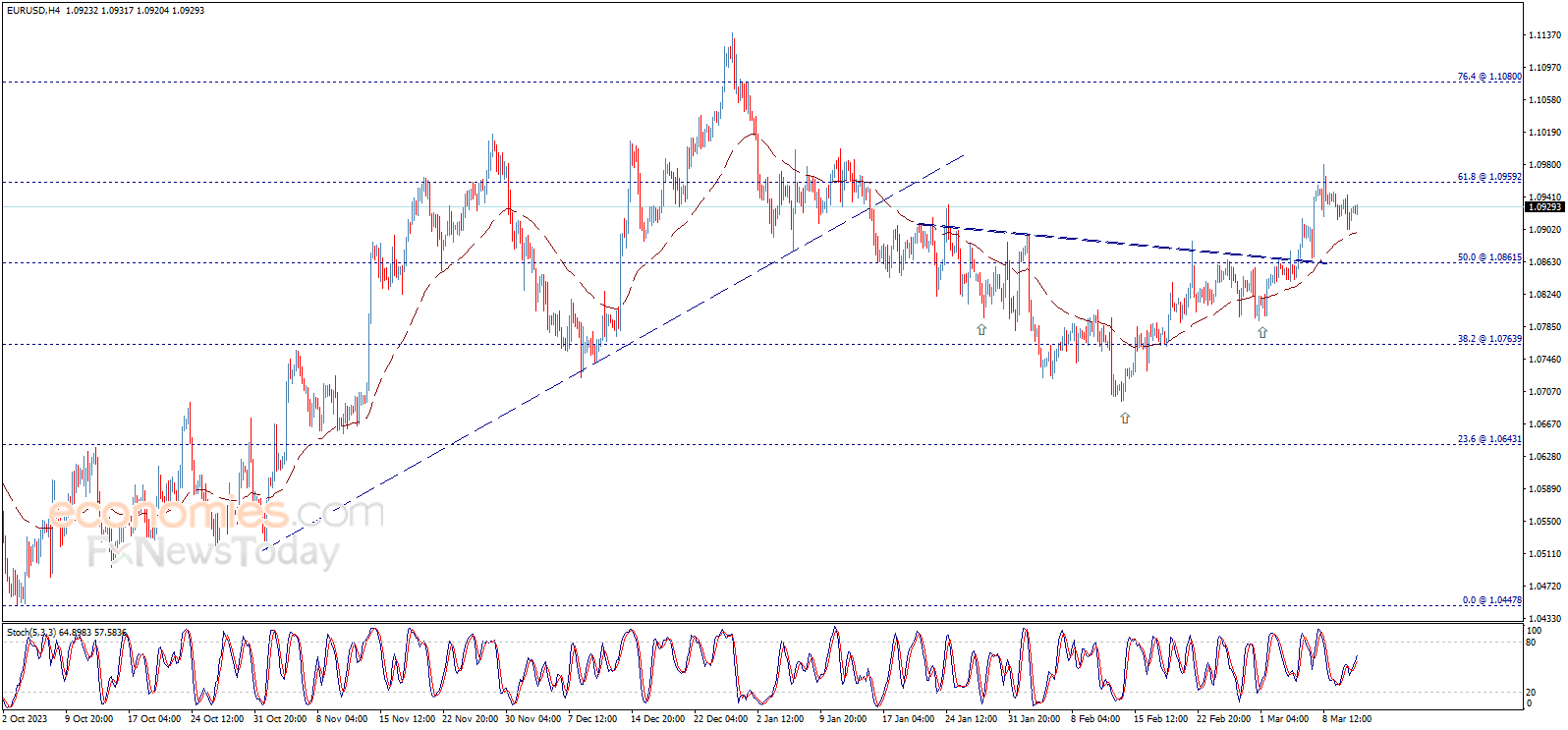 The EURUSD price fluctuates within tight range since morning, and attempts to provide calm positive trades, to keep the bullish trend scenario valid as it is without any change for today, which needs confirming breaching 1.0960 to open the way to head towards 1.1080, reminding you that the continuation of the bullish wave depends on the price stability above 1.0860.