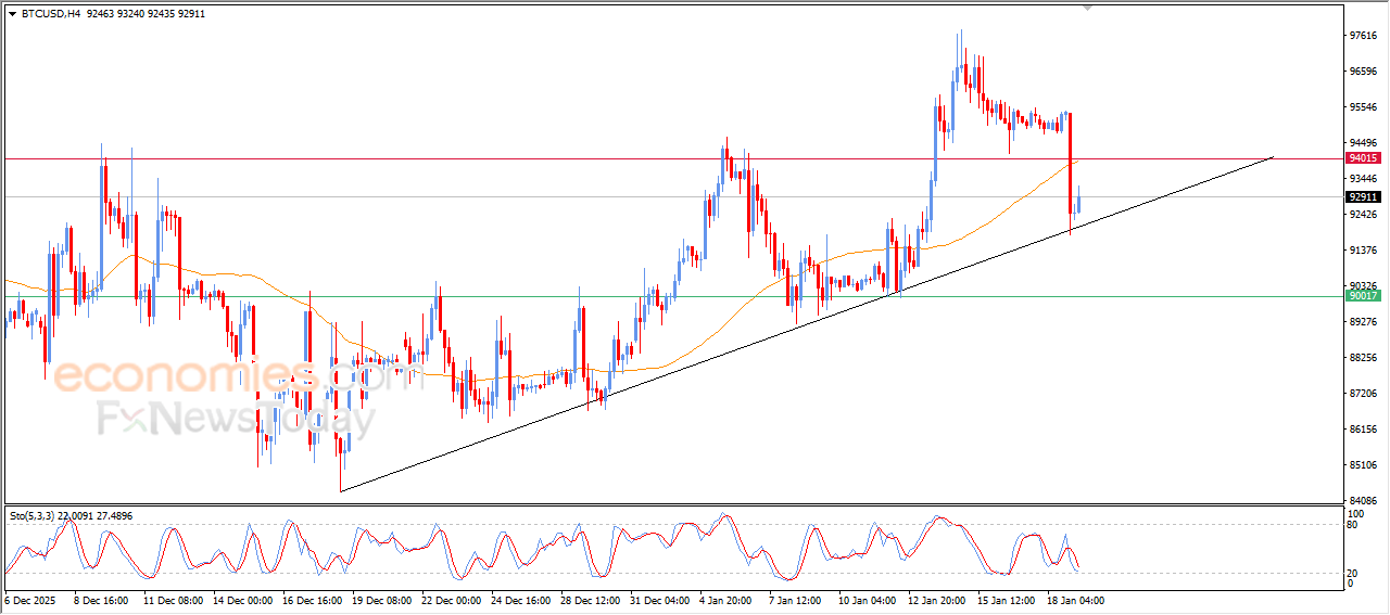 BTCUSD prices rose slightly in its last intraday trading, as it leaned on a support of a main bullish trend line on short-term basis, gaining some bullish momentum that helped it to achieve these gains, to target recovering some previous losses, and attempts to offload its oversold conditions on the relative strength indicators, amid the continuation of the negative pressure due to its trading below EMA50, with the dominance of bearish corrective wave on the intraday basis.