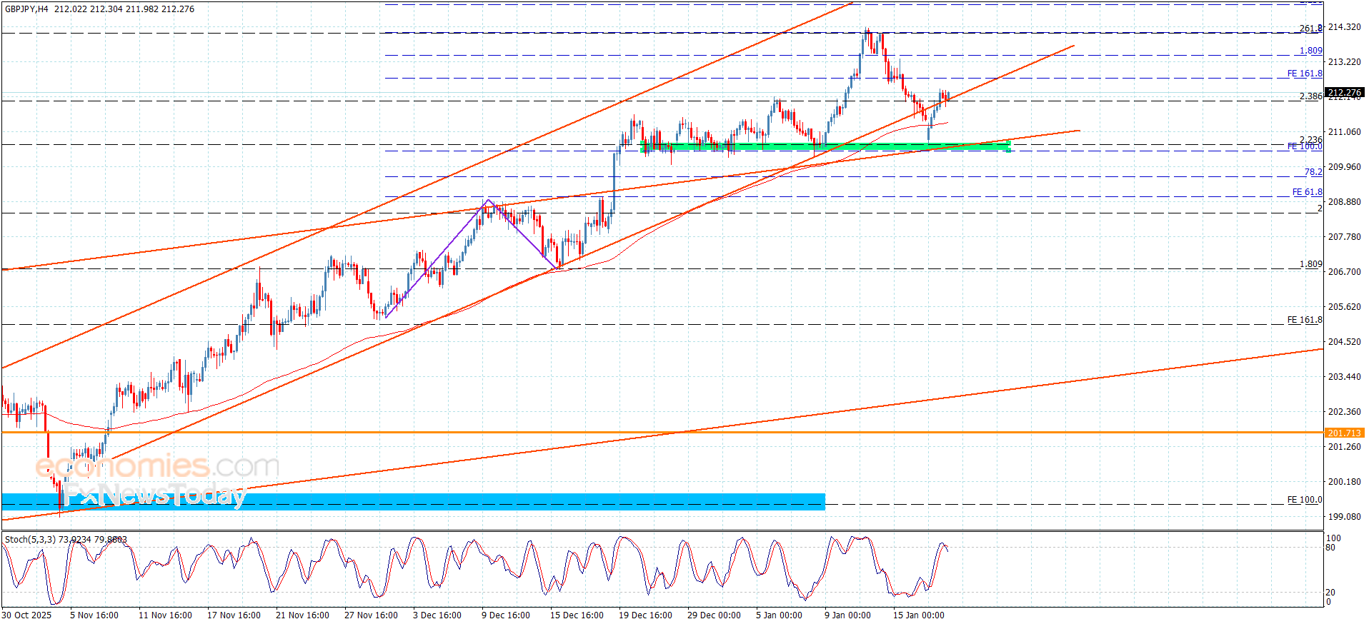 The expected trading range for today is between 211.80 and 213.45