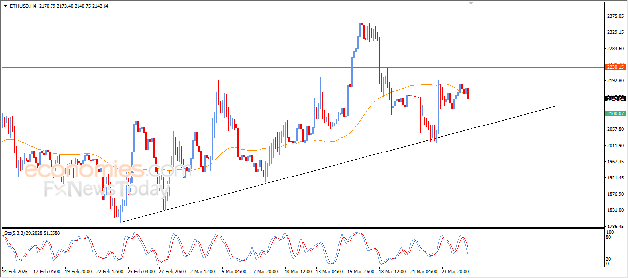 Ethereum price (ETHUSD) declined during its recent intraday trading, amid the emergence of negative signals from the relative strength indicators, after reaching overbought levels, which makes the price keep attempting to gain bullish momentum that might help it to recover and rise again, which helps it to surpass the negative pressure of EMA50, amid the dominance of the main bullish trend on the short-term basis, with its trading alongside trend line that supports this track.