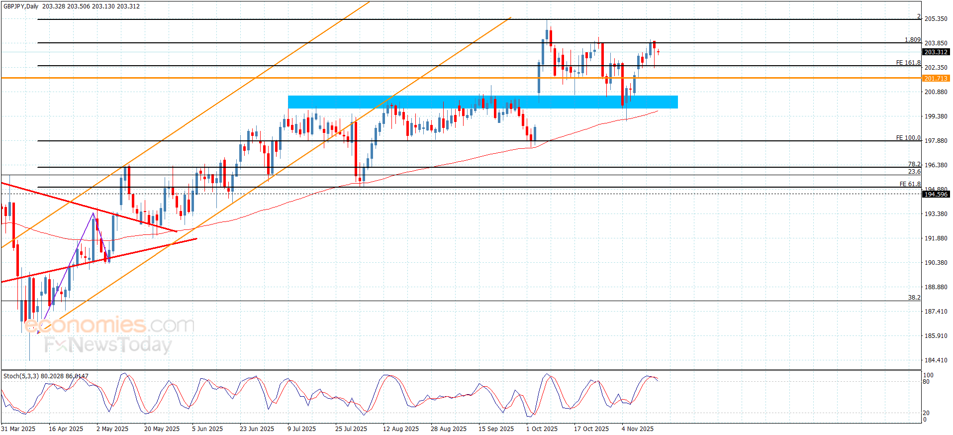 The GBPJPY pair repeatedly provided mixed trading on Friday, affected by the stability of the extra barrier at 203.95, besides stochastic attempt to exit the overbought level as appeared in the above image.