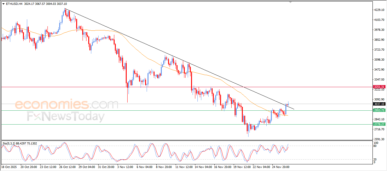The (ETHUSD) price rose in its last intraday trading, supported by its continuous trading above EMA50, representing dynamic support that provides renewed bullish momentum, with the emergence of the positive signals on the relative strength indicators, despite reaching overbought levels, to reach the resistance of the main bearish trend line on the short-term basis, if it breaches it this will be announcement for its momentum to continue the corrective rise on the near-term basis.