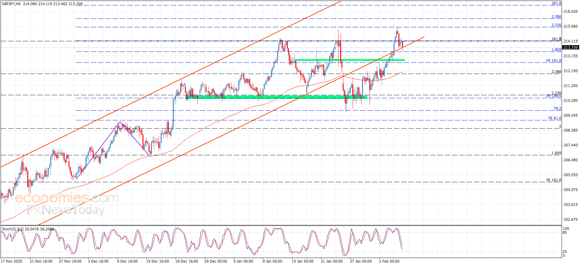 Note that stochastic decline below 50 level, and attempt to form extra barrier at 214.15 level, these factors makes us wait for breaking the current support, to reinforce the chances to begin gathering gains, to expect targeting 212.90 level initially, where breaking this barrier might extend the trading towards 212.45 and 212.00, while holding above 214.15 will confirm the continuation of the bullish scenario, waiting to reach 215.00.