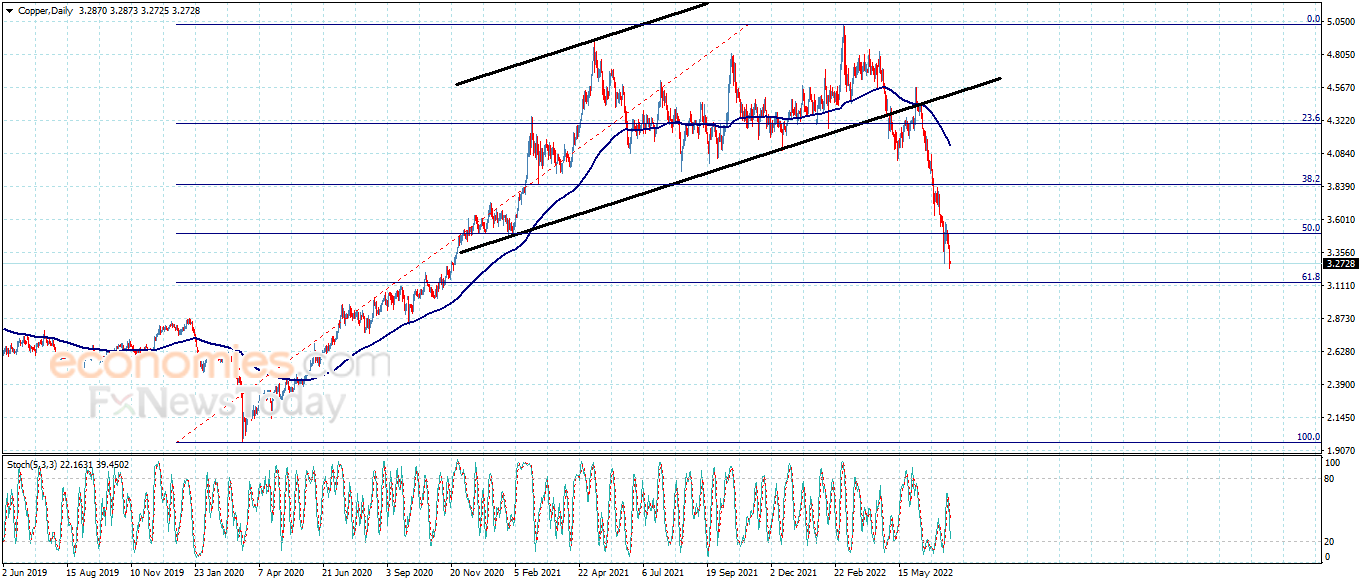 No change to copper price negative track, to notice resuming the decline and touch 3.2400 level recently, assuring the importance of holding below 3.5500 to assist to reinforce the bearish scenario, expecting to get negative momentum by the major indicators to reach the next main target at 3.1300 followed by monitoring the price behavior to manage to detect the medium term targets.