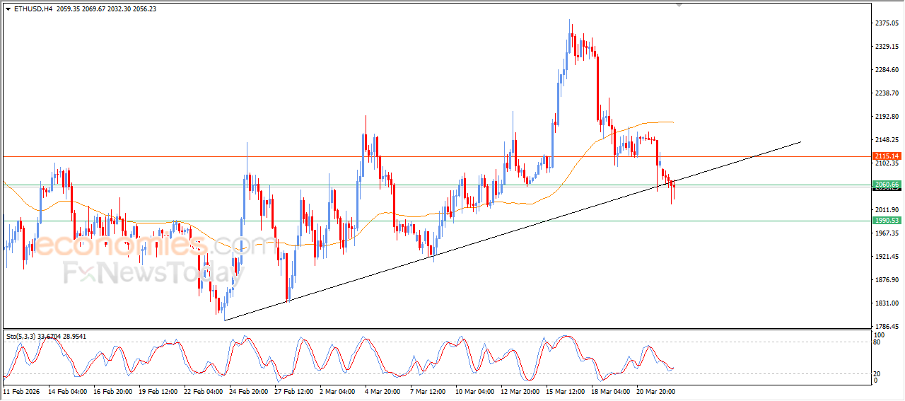 Ethereum (ETHUSD) kept declining in its recent intraday trading, affected by the dynamic and negative pressure that is represented by its trading below EMA50, to break main bullish trend line on short-term basis, intensifying the negative pressure on the price, despite the emergence of positive overlapping signals from the relative strength indicators, after reaching oversold levels, which helped it to reduce the sharp losses, which will not has strong effect unless it recovers the key and near resistance levels.