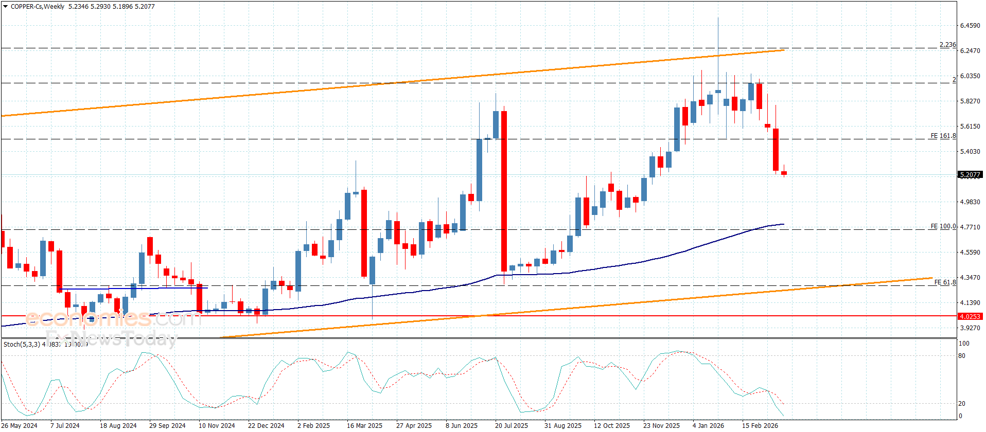 Copper price confirmed its surrender to the bearish corrective bias, by providing several closes below the broken support that is represented by $5.5100 level, recording negative targets by reaching $5.1900.