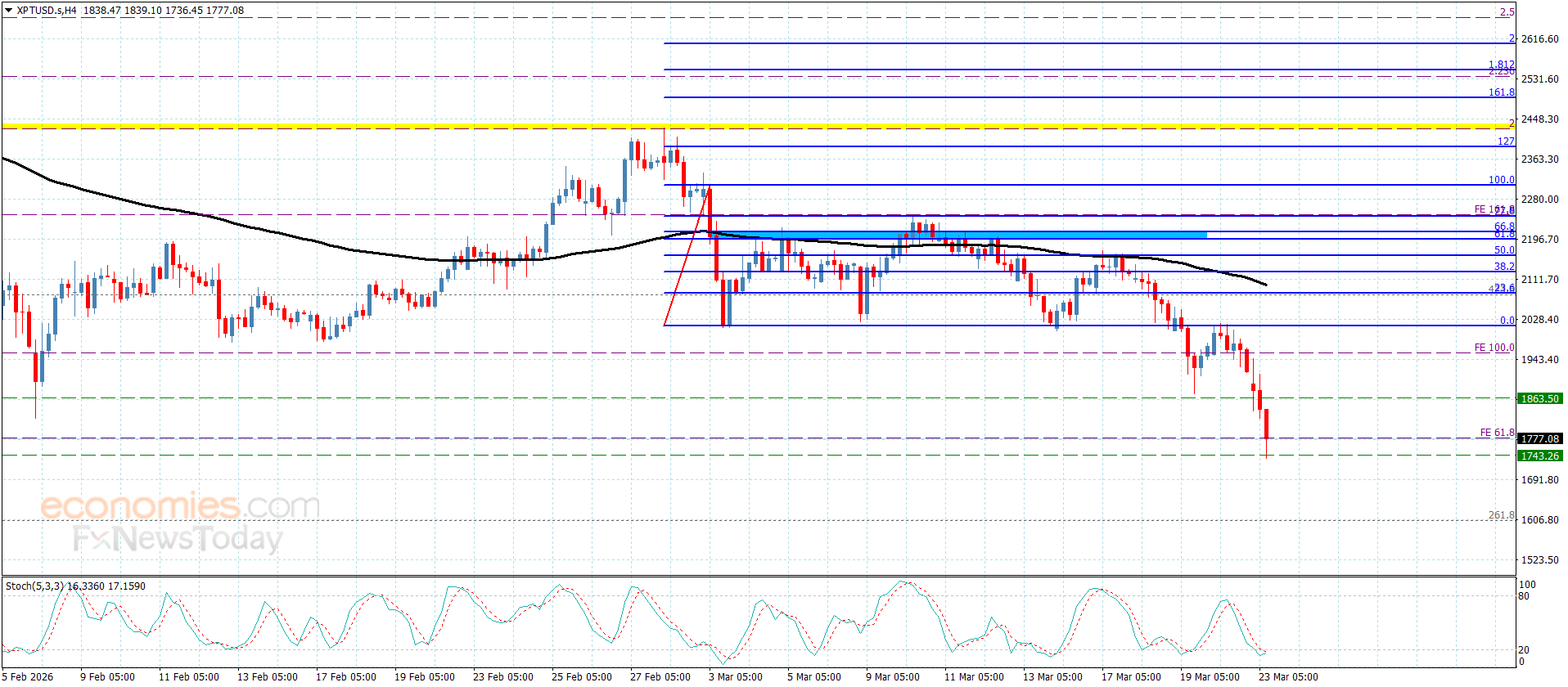 Platinum prices suffer big losses since this morning, confirming its surrender to the suggested bearish bias, to reach $1745.00, which represents an extra support against the bearish trading.