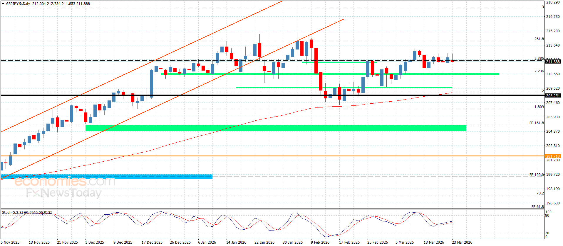 The expected trading range for today is between 211.65 and 214.00