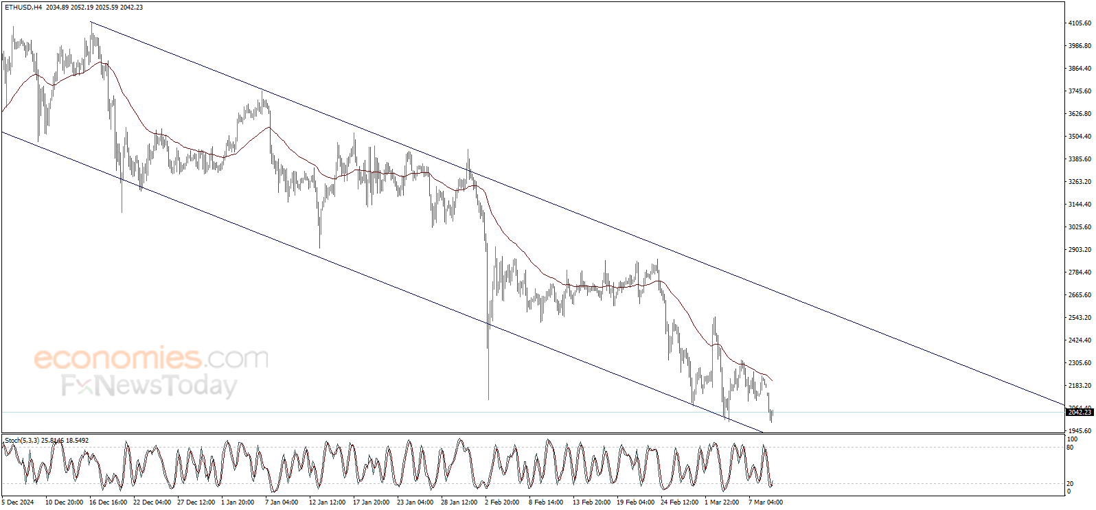 Ethereum price (ETHUSD) provided new negative trades to approach our waited target at 1965.00$, falling under continuous negative pressure coming by the EMA50, to support the chances of continuing the bearish trend in the upcoming period, which its targets extend to reach 1850.00$ areas.