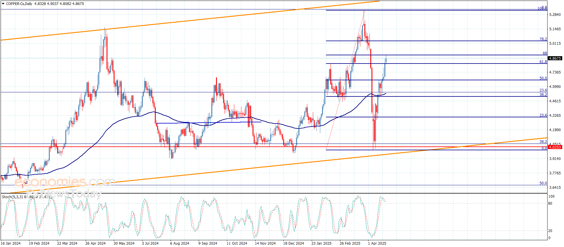 Copper price’s trading extended towards 68% Fibonacci correction level, recording the second target at $4.9000, to form an extra barrier against the bullish rally.