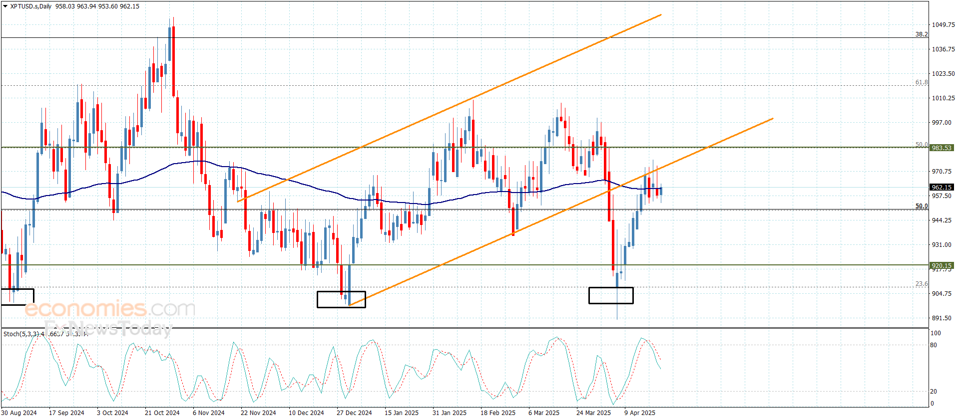 Platinum price failed to enter the bullish channel’s levels by its repeated stability below the $972.00 level, which forces it to provide mixed trading, to notice its stability near the moving average 55 at $962.00.