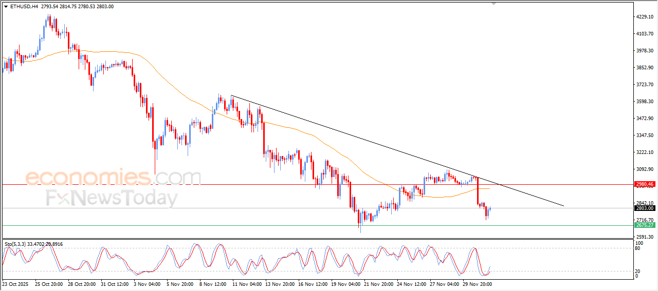 The (ETHUSD) price rose in its last intraday trading, amid the continuation of the dynamic negative pressure that is represented by its trading below EMA50, reinforcing the stability and dominance of the main bearish trend, especially with its trading alongside minor trend line on the short-term basis, attempting to recover some previous losses, and attempting to offload some of its clear oversold conditions on the relative strength indicators, especially with the emergence of the positive signals from there.
