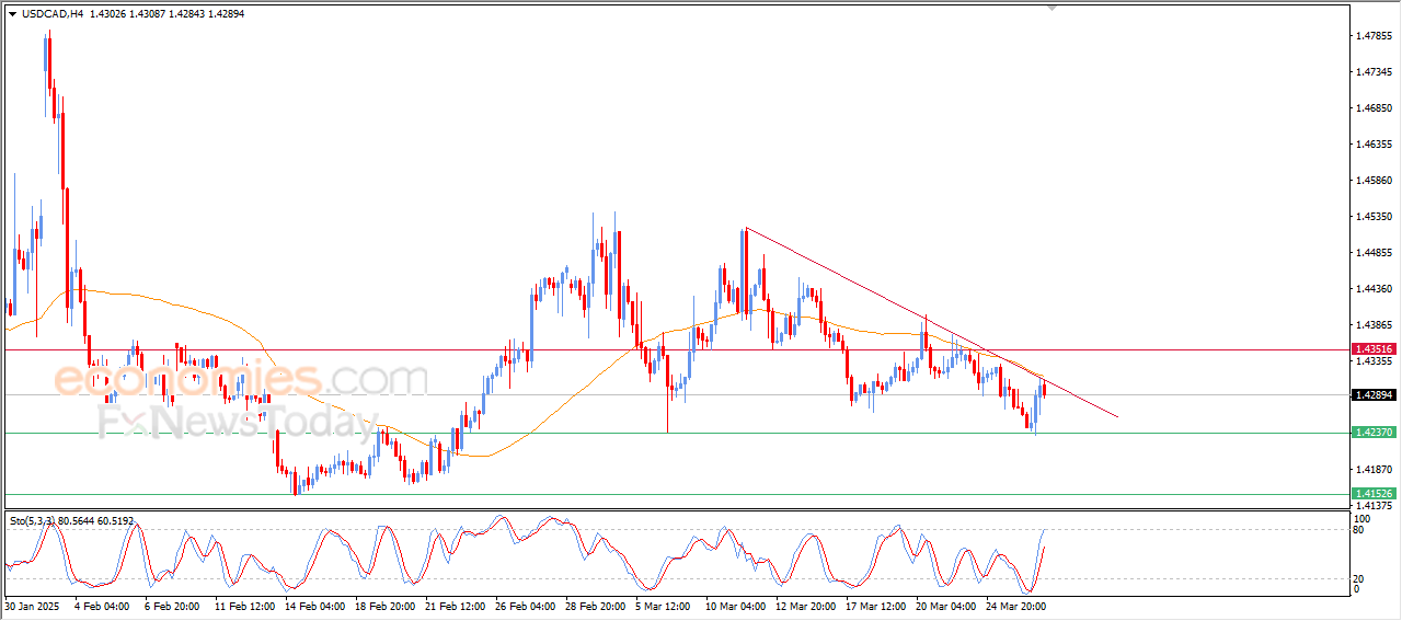 The USD/CAD price fell in latest intraday trading after bumping into the resistance of the 50-candle SMA, while testing the secondary downward trend line in the short term, as the Stochastic reached overbought levels compared to the price’s movements, hinting at negative divergence would heap more pressure on the price.
