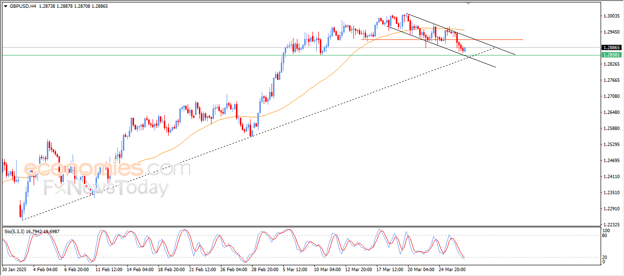 The GBP/USD price edged lower in latest intraday trading, continuing the downward correctional trend as it trades within a price channel in the short term, with ongoing negative pressure due to trading below the 50-candle SMA, coupled with negative signals from the Stochastic despite reaching oversold levels.