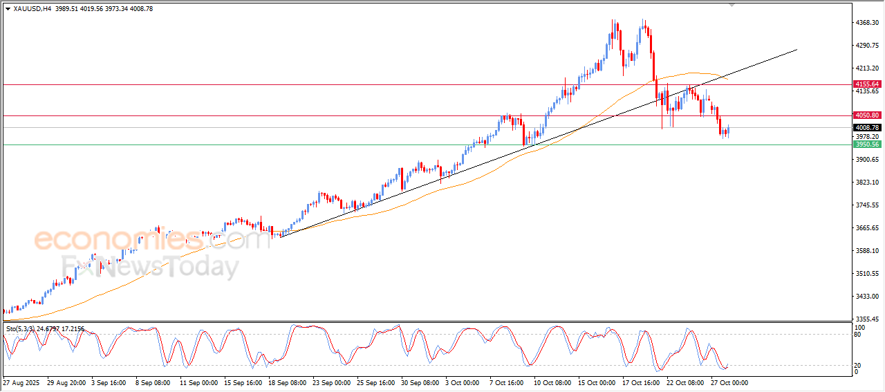 Despite these attempts, gold remains facing negative pressures due to its stability below EMA50, which limits its ability to perform sustainable recovery, amid the continuation of the short-term bearish corrective trend dominance.