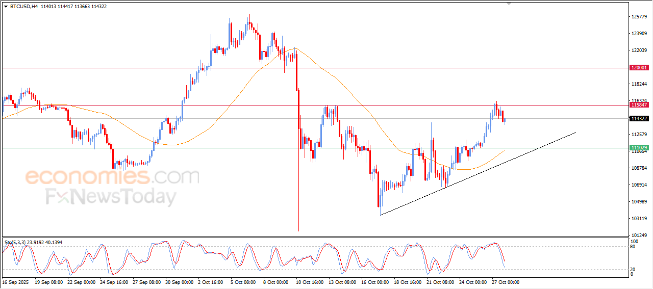 Bitcoin (BTCUSD) declined in its last intraday trading, after its failure to surpass the key resistance level at $115,800, to begin corrective move that targets gathering the gains of its previous rises, which helped it to offload the clear overbought conditions on the relative strength indicators, opening the way for gathering the required bullish momentum to breach the resistance later.