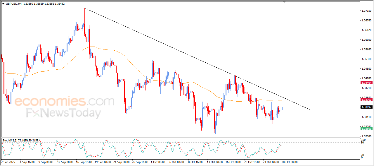 The (GBPUSD) price rose during its last trading on the intraday basis, supported by the positive signals from the relative strength indicators. The pair is attempting to correct the main bearish trend on the short-term basis, with the continuation of the negative pressure due to its trading below EMA50, which reduces the chances of the price recovery in the upcoming period, especially with the relative strength indicators reaching overbought levels, compared to the price move, which suggest forming negative divergence that will intensify the negative pressure.