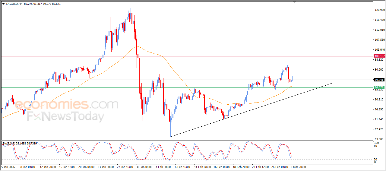 Silver prices rose in the last intraday trading, after it leaned on EMA50’s support, accompanied by testing $86.00 support, forming double technical support that provided clear bullish momentum and helped the price to rebound quickly and recover.