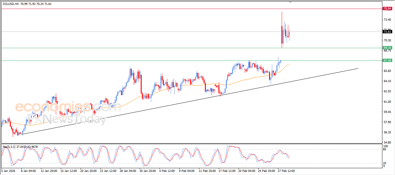 Crude oil witnessed fluctuated trading on their last intraday levels, with the emergence of negative signals from relative strength indicators, reflecting a state of caution and partial profit-taking after previous bullish waves.