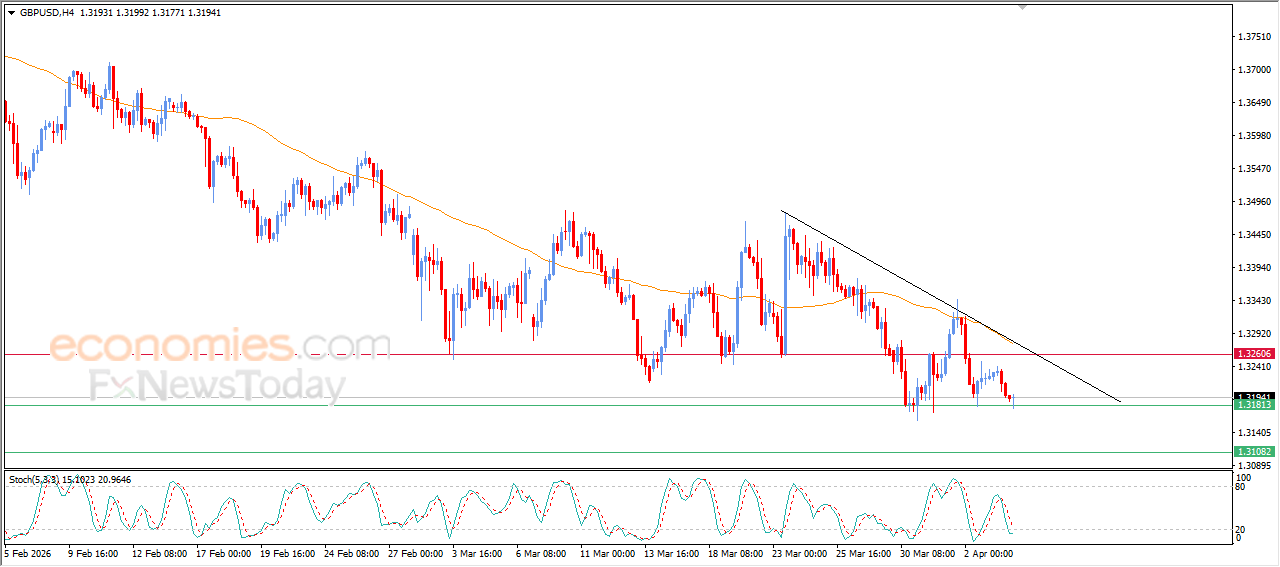 GBPUSD is holding onto series of consecutive losses in recent intraday trading, leaning on the key support of 1.3180 preparing to break it, amid the dominance of the main bearish trend on short-term basis, with its trading alongside supportive minor trend line for this path, besides the continuation of the negative pressure due to its trading below EMA50, which reduces the chances of full near-term recovery, especially with the emergence of negative signals from the relative strength indicators, despite reaching oversold levels.