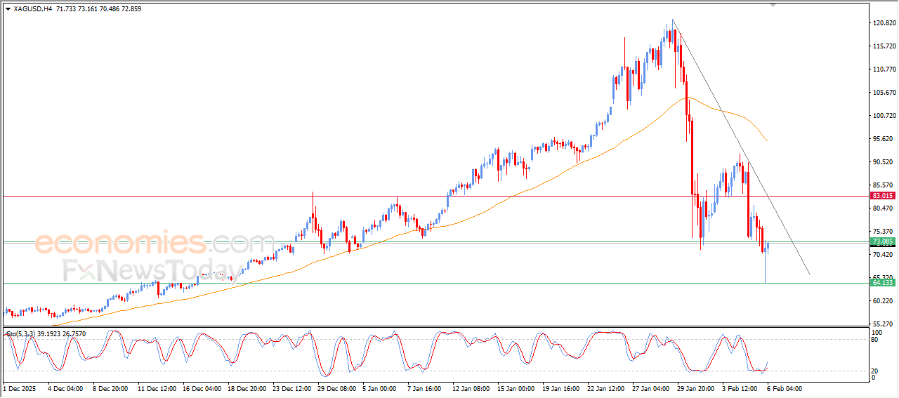 Silver prices (SILVER) rebounded higher in their recent intraday trading, after breaking our previously suggested target at $73.00 key support, this rebound represents an attempt to recover the last losses and absorb the strength of the dominant selling pressure.