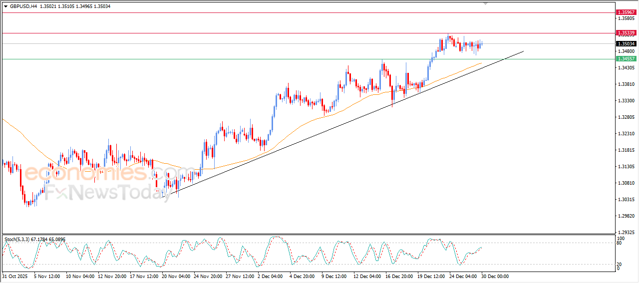 GBPUSD witnessed fluctuating trading on its last intraday levels, amid the continuation of the dynamic support that is represented by its trading above EMA50, reinforcing the stability and strength of the main bullish trend on the short-term basis, especially with its trading alongside supportive trend line for this track, especially with the emergence of the positive signals from the relative strength indicators, attempting to gain bullish momentum that might help it to recover and target new resistance levels.