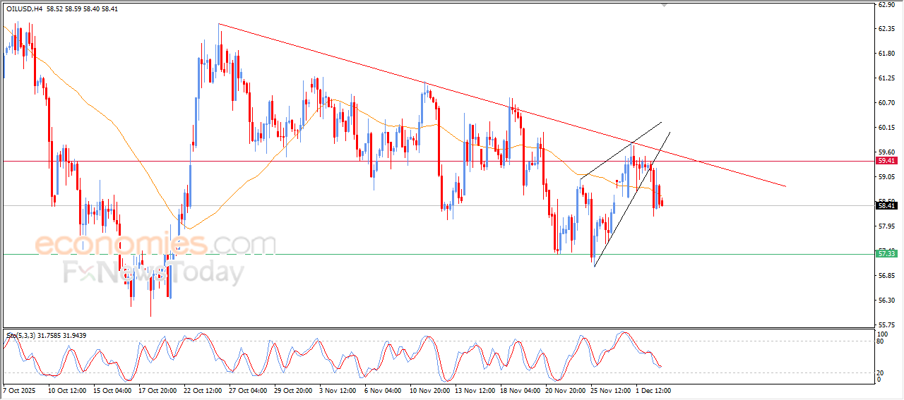 This weak performance appears with the price remaining below EMA50, indicating the absence of dynamic support to strengthen near-term recovery chances, confirming the persistence of these pressures. However, crude oil may struggle to return to the bullish track unless it regains clear buying strength.