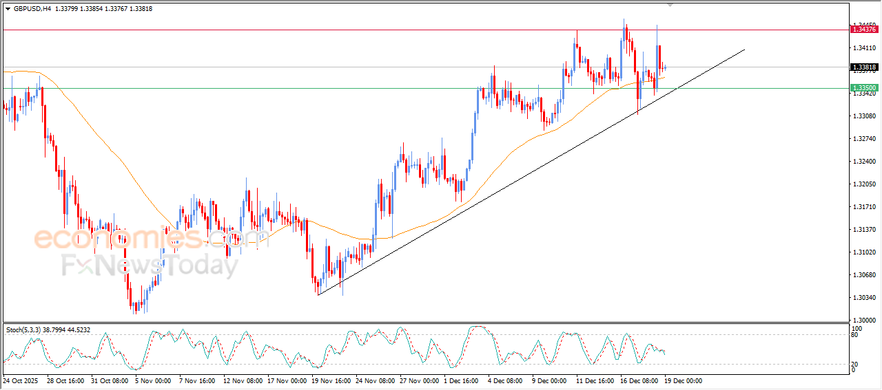 GBPUSD settles on a decline in its last intraday trading, with the emergence of negative signals on the relative strength indicators, to continue its attempts to gain bullish momentum that might help it to recover and rise again, amid the continuation of the dynamic support that is represented by its trading above EMA50, reinforcing the stability and dominance of the main bullish trend on the short-term basis, especially with its trading alongside supportive trend line for this trend.