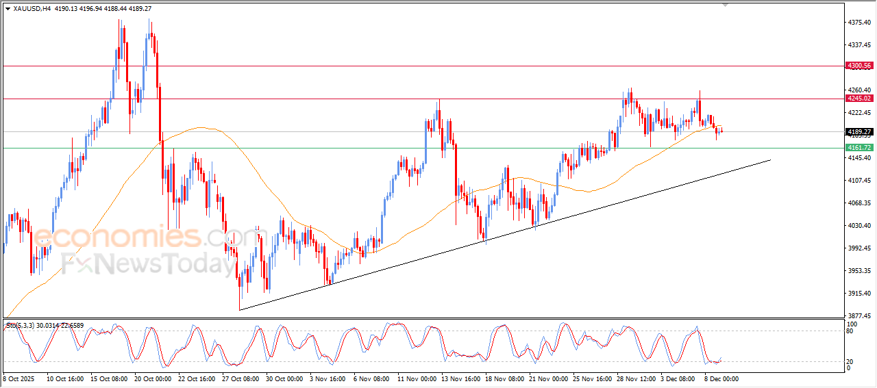 Gold declined in its recent intraday trading, moving within sideways range under the pressure of the resistance’s stability at $4,245, increasing the negative pressure on the price after breaking the EMA50’s support, which reinforces the likelihood of extending the decline to look for rising low to form a new recovery base in its upcoming trading.