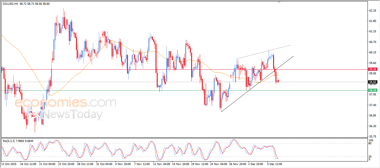 Crude oil settles with sharp decline during its recent intraday trading, after breaking a key support for a negative technical formation on the short-term basis(the rising wedge pattern), to surpass the EMA50’s support, intensifying the strength of the selling pressure and pushing it towards weaker levels.