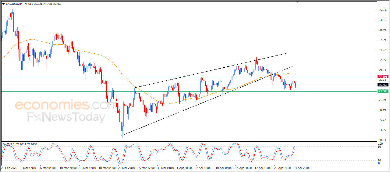 Silver price declined during its recent intraday trading, affected by a previously formed negative technical pattern represented by a rising wedge on the short-term chart, which increased selling pressure and pushed the price to continue falling.
