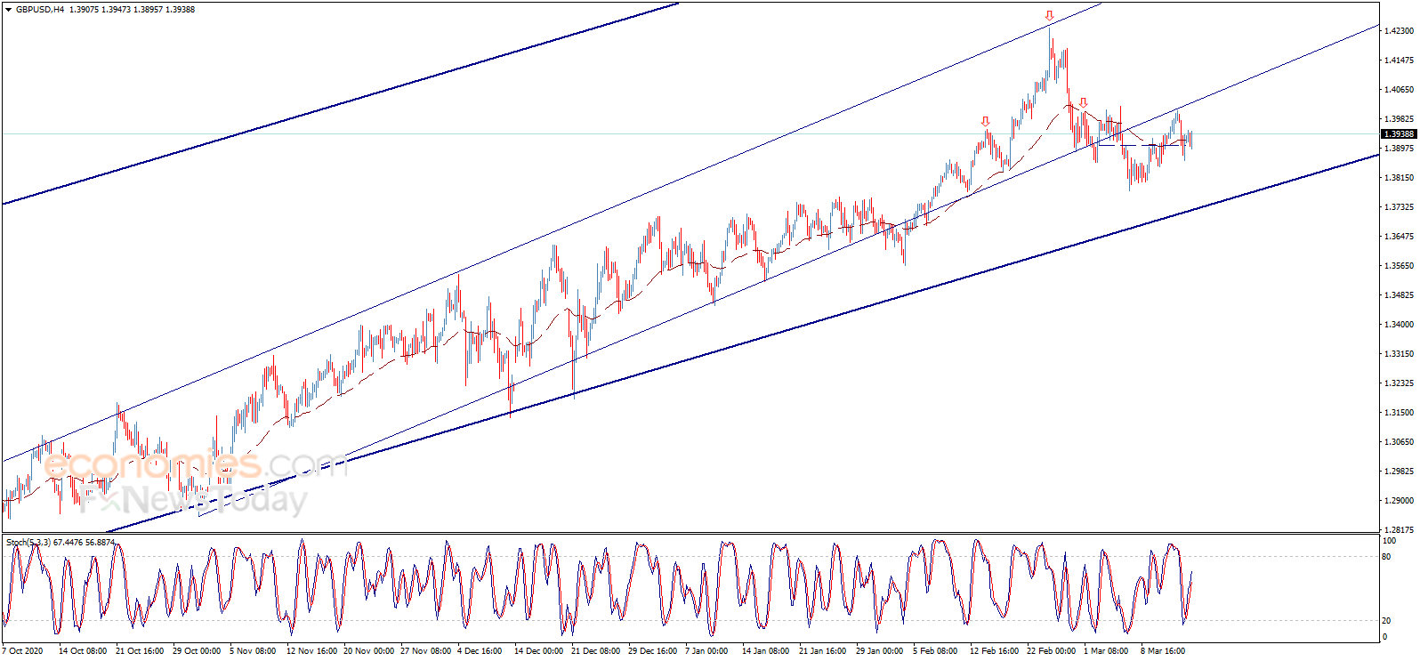 The GBPUSD pair shows sideways trading since morning and hovers around the EMA50, noticing that stochastic loses its positive momentum clearly, waiting to motivate the price to resume the expected bearish trend for today, which targets 1.3800 as a next station, while achieving it requires holding below 1.4025.