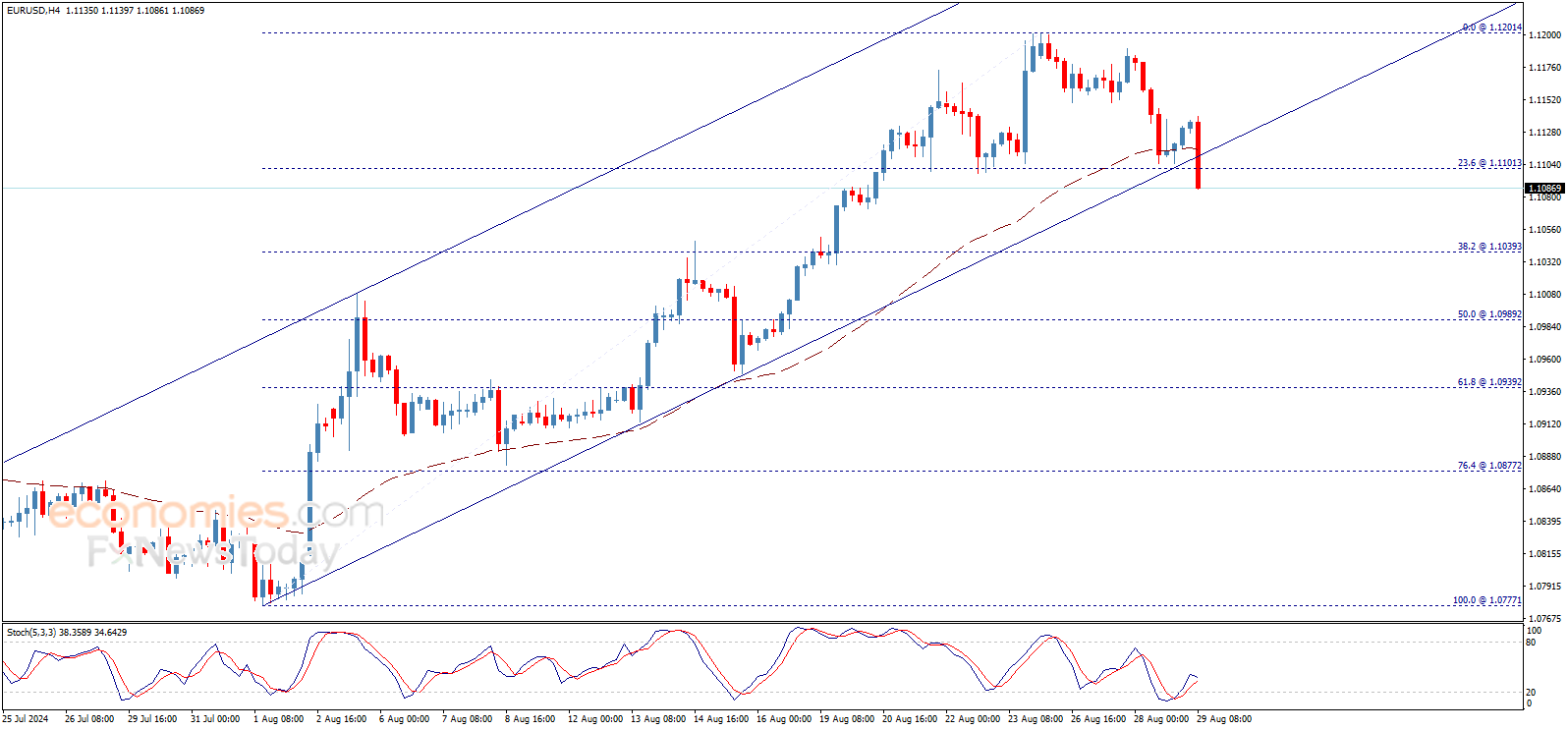 The EURUSD price faces strong negative pressure now to attack the bullish channel’s support line and attempts to confirm breaking it, to hint heading to start bearish correction on the intraday basis, its first target located at 1.1040$.