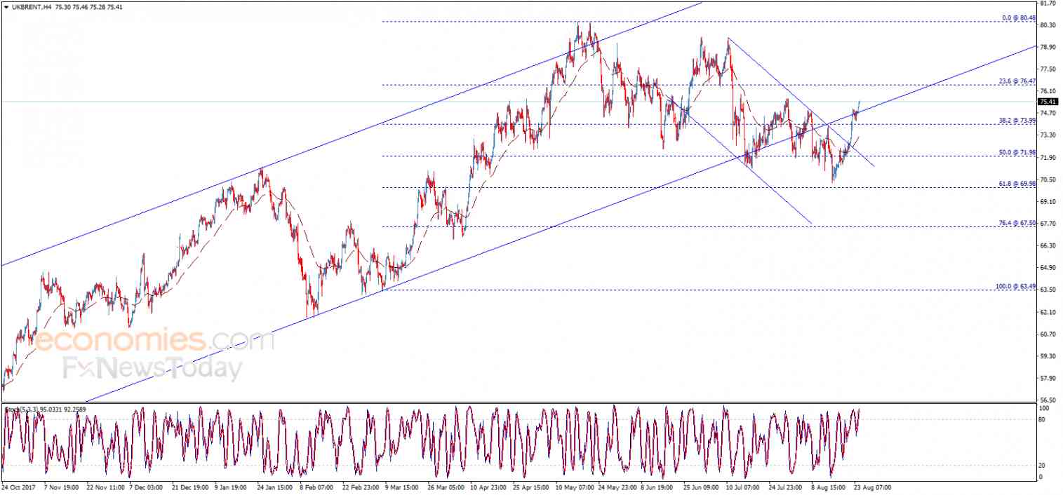 Brent oil price trades positively since morning to gradually crawl towards our first target at 76.47, reinforcing the expectations of achieving more gains in the upcoming sessions, noting that breaching the mentioned level will extend the bullish wave to reach 78.00 as a next main station, while the price needs to hold above 74.00 to guarantee achieving the suggested targets.