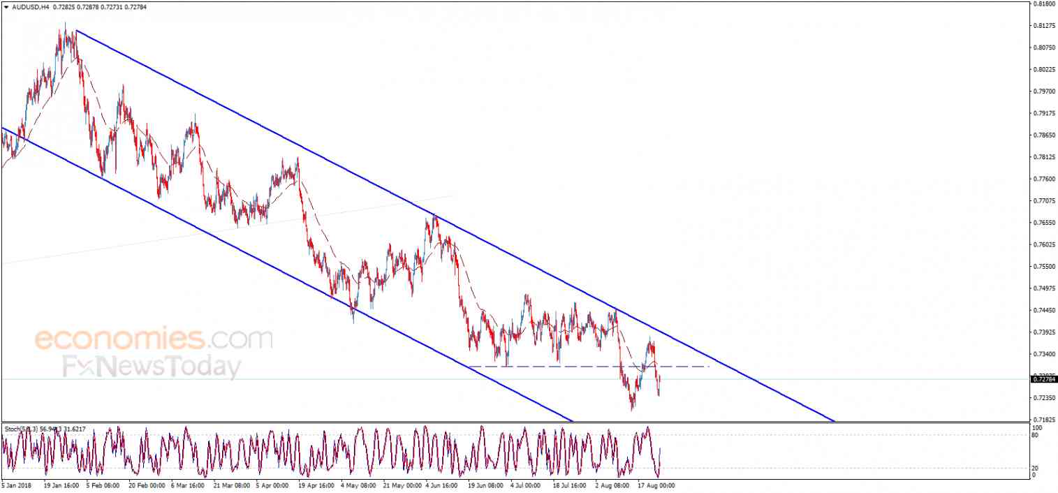 The AUDUSD pair’s rise stops at 0.7280 areas and begins to provide bearish rebound signals, to keep the bearish trend scenario valid in the upcoming sessions, supported by the negative pressure formed by the EMA50, which conditions holding below 0.7310 level, noting that our waited targets begin at 0.7200 and extend to 0.7075.