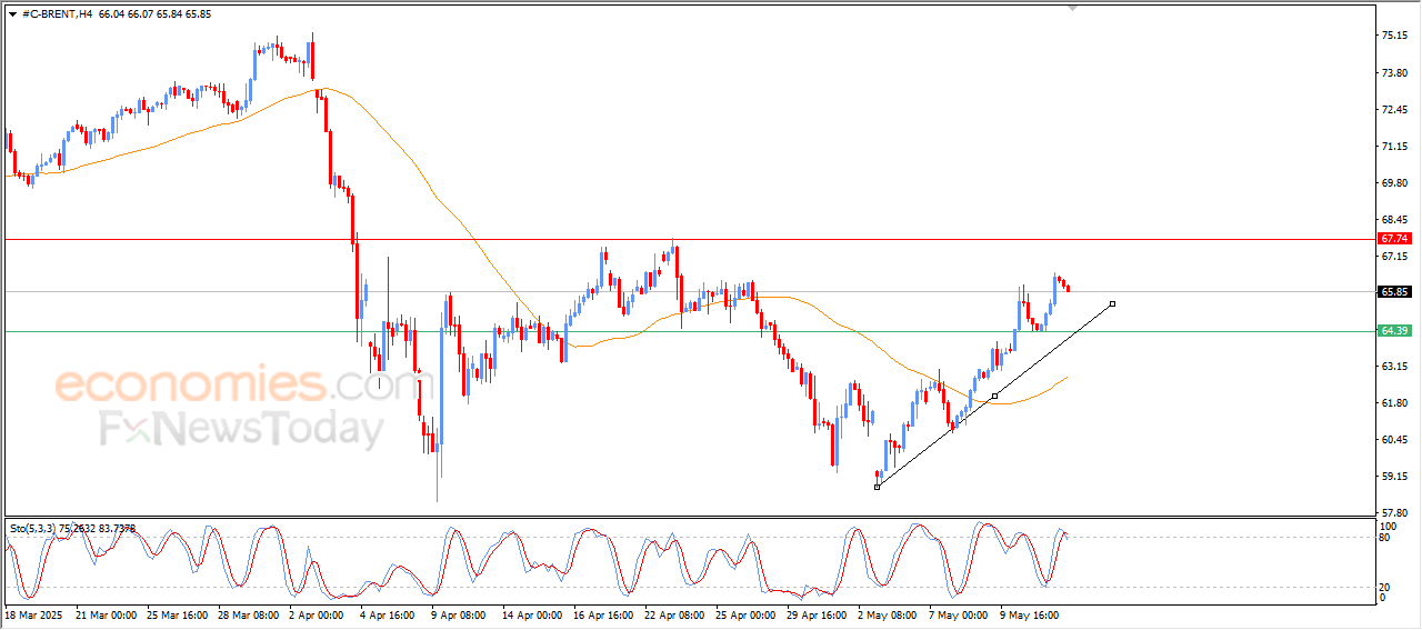 Brent crude oil price declined in its recent intraday trading, amid the dominance of bullish correctional wave on the short-term basis and its trading alongside bias line, with the continuation of the positive pressure due to its trading above its EMA50, which makes the price decline to gather its previous gains, and attempt to offload some of the clear overbought conditions on the (RSI), especially with the beginning of negative overlapping signals appearance, to gather its positive strength that might assist it to recover and rise again.
