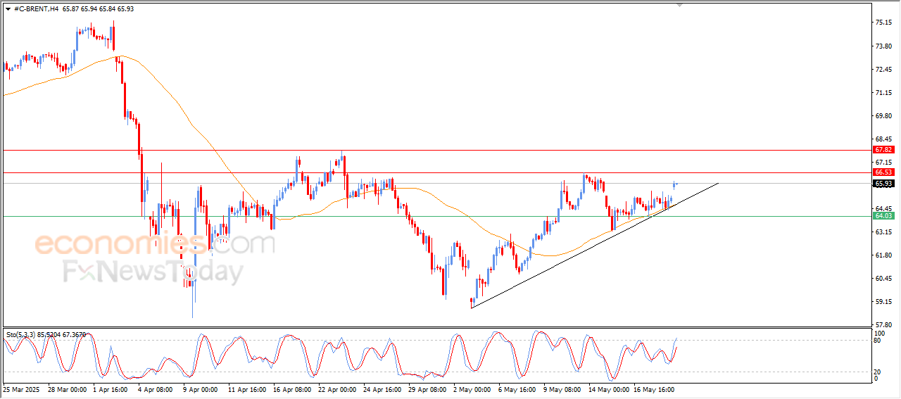 The (Brent) price rose sharply in its last intraday trading, preparing for reaching the key resistance at $66.50, amid the dominance of the bullish correctional trend on the short-term basis and its trading alongside a bias line, with the continuation of the positive pressure due to its trading above the EMA50, besides the emergence of the positive signals on the (RSI), despite reaching overbought levels.