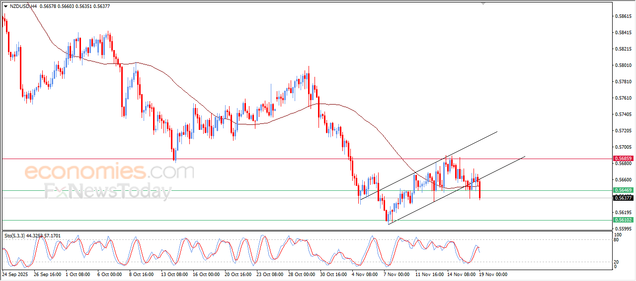 The (NZDUSD) price slipped lower in its last intraday trading, to break the support of bullish corrective channel’s support that limited its previous trading on the short-term basis, accompanied by surpassing the support of its EMA50, intensifying the negative pressure on the pair, especially with the emergence of the negative signals on the relative strength indicators, after reaching overbought levels.